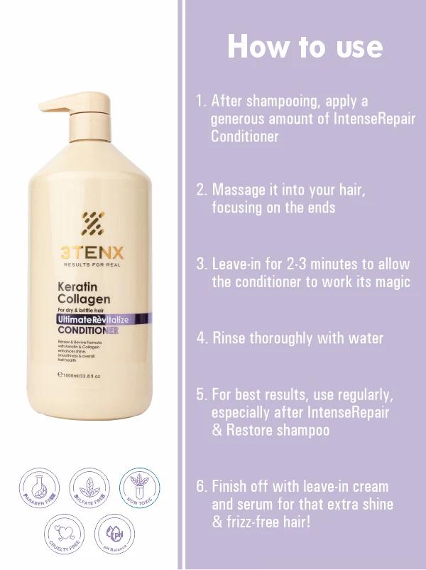 3TENX Ultimate Revitalize Conditioner – Keratin & Collagen Repair | Smooth & Strengthen | 1000 ml