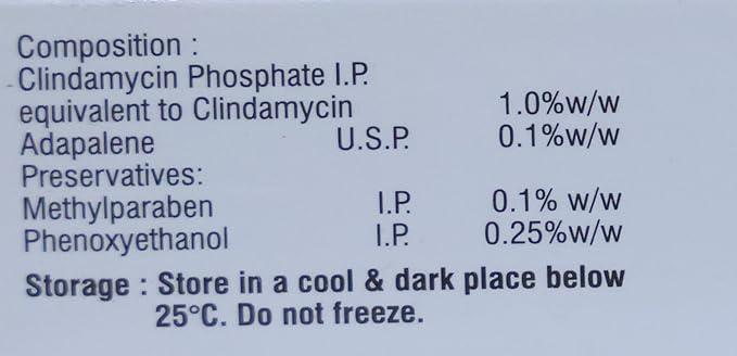 Dual-Action Formula: Combines Adapalene (Vitamin A derivative) to regulate skin cell turnover with Clindamycin to fight bacteria.