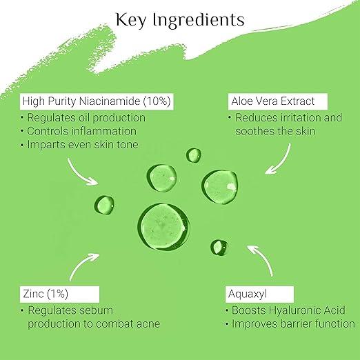 - Niacinamide, Zinc PCA, Aloe Vera Extract, Aquaxyl