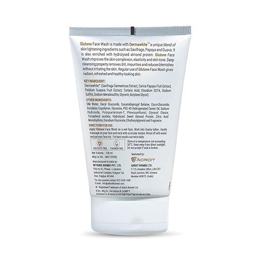 Glutone Face Wash is a gentle, sugar-based cleanser formulated to provide bright, radiant, and hydrated skin. It combines clinically researched ingredients such as Dermawhite, Saxifraga Sarmentosa Extract, Papaya & Guava Extracts, and Hydrolyzed Almond Protein to cleanse, brighten, and moisturize the skin without causing dryness.