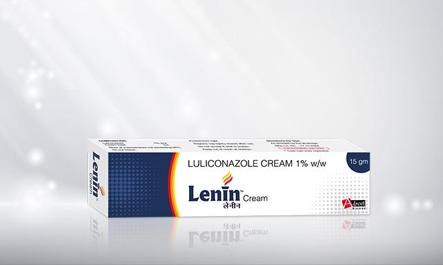 LENIN 1% Cream is a prescription topical antifungal used to treat cutaneous fungal infections such as tinea pedis (athlete’s foot), tinea cruris (jock itch), and tinea corporis (ringworm). Its active ingredient, Luliconazole, belongs to the azole class of antifungals. It works by inhibiting fungal cell membrane formation, effectively stopping the growth of the fungus and relieving itching, redness, and irritation.
