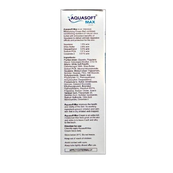 New Aquasoft Max Intensive Moisturising Cream is a nourishing and hydrating cream formulated to improve skin elasticity and restore moisture balance. Enriched with a blend of skin-loving ingredients like squalane and shea butter, it soothes, nourishes, and softens the skin. Ideal for daily use, this cream leaves your skin feeling smooth, supple, and hydrated all day long.