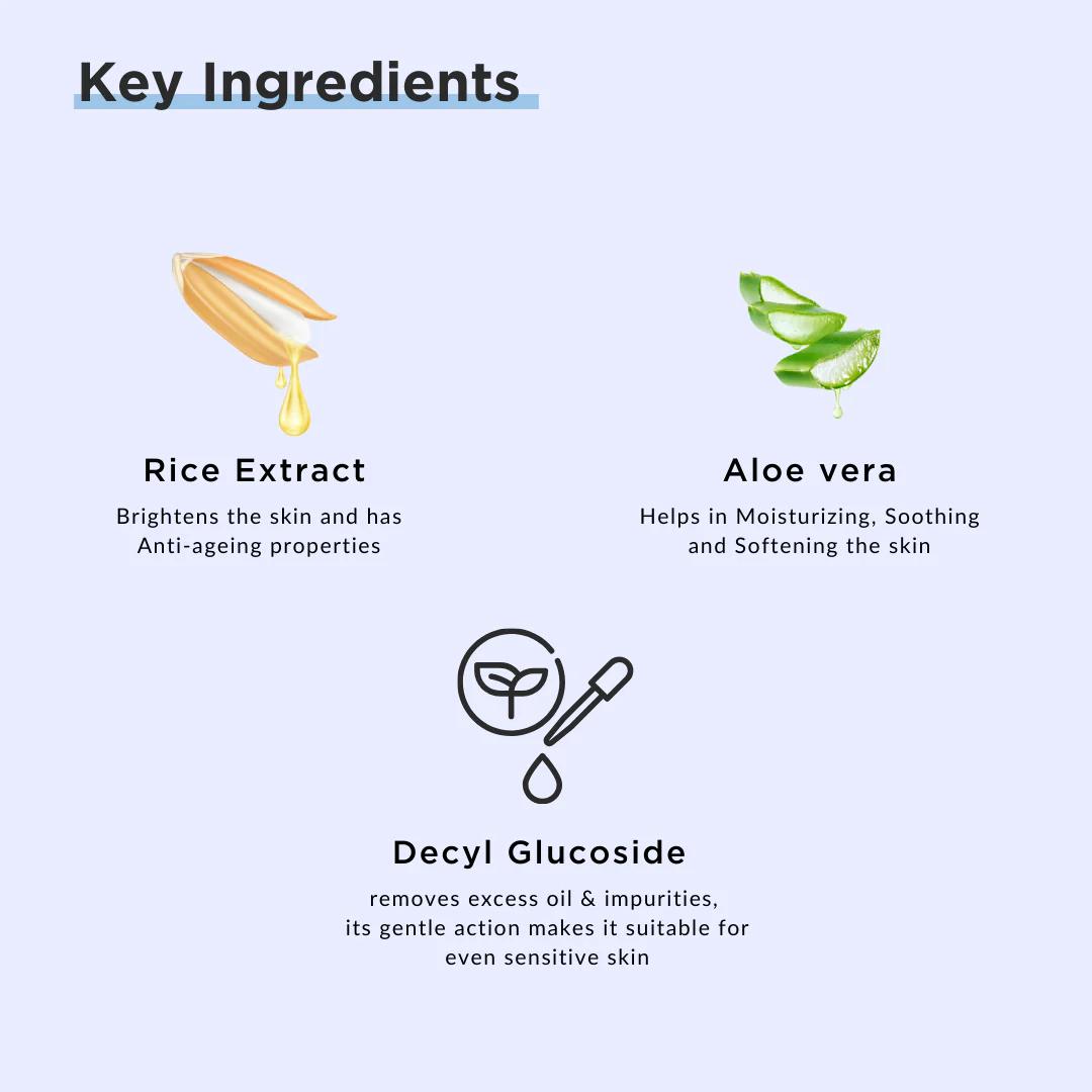 RiceKraft Rice Water Face Wash is a gentle daily cleanser inspired by Korean skincare traditions. Enriched with natural rice extracts and Aloe Vera, it effectively removes dirt, oil, and impurities while keeping your skin soft, hydrated, and fresh. Its antioxidant-rich formula helps brighten the skin tone, reduce blemishes, and restore a natural, healthy glow. Suitable for both men and women, this paraben- and sulphate-free face wash is perfect for all skin types.