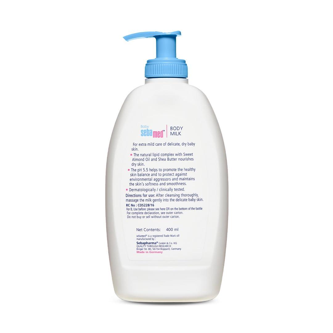 Use a small amount of body milk and massage gently into the baby's tender skin after cleansing or bathing.