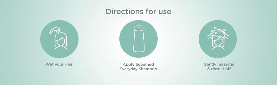 Take a small amount of Sebamed Everyday Shampoo in your palms and work into a lather.