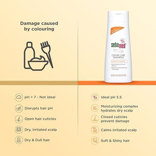 Sebamed Hair Colour Care Shampoo is a gentle, pH 5.5-balanced formula specially designed for coloured and chemically treated hair.