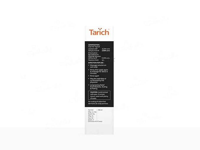 Tarich Scalp Solution (100 ml) is a comprehensive psoriasis treatment designed to manage both scalp and general psoriasis symptoms. With Coal Tar (4.25% w/v) and Salicylic Acid (2% w/v), it helps reduce scaling, inflammation, and itching while deeply hydrating and soothing affected areas. Its larger 100 ml size is perfect for long-term daily use, providing consistent relief and promoting overall scalp and skin health.