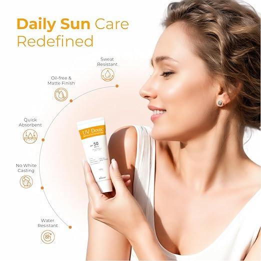 UV Doux Silicone Sunscreen Gel SPF 50 PA+++ is a high-performance sunscreen that shields your skin from UVA and UVB rays. Its oil-free, lightweight gel formula ensures a matte finish, helps control sebum, and is perfect for acne-prone and combination skin types.