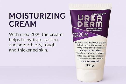 Provide intensive care for extremely dry, thickened, and scaly skin with UreaDerm 20% Moisturizing Cream. Enriched with 20% urea, this advanced therapeutic cream delivers deep hydration, gently exfoliates dead skin cells, and softens rough, hardened areas. Ideal for managing symptoms of Ichthyosis and Psoriasis, it restores the skin barrier, reduces irritation, and improves overall skin texture, offering lasting comfort and protection.