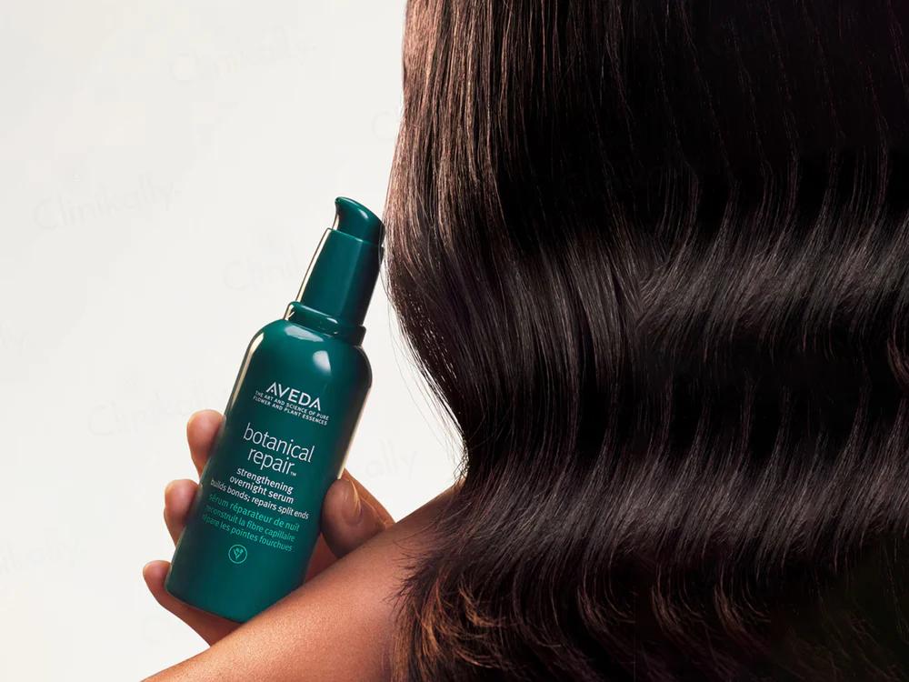 Aveda Botanical Repair Strengthening Overnight Hair Serum is a lightweight, plant-powered formula designed to repair hair deeply while you sleep. It penetrates all three layers of the hair, helping reduce split ends by up to 84% in just one night. Powered by bond-building plant technology, the serum strengthens the hair’s cortex, reduces friction, and helps prevent future damage. Enriched with nourishing botanical ingredients such as Nangai oil, avocado oil, and green tea extract, it restores hair vitality and leaves hair softer, shinier, and healthier by morning.