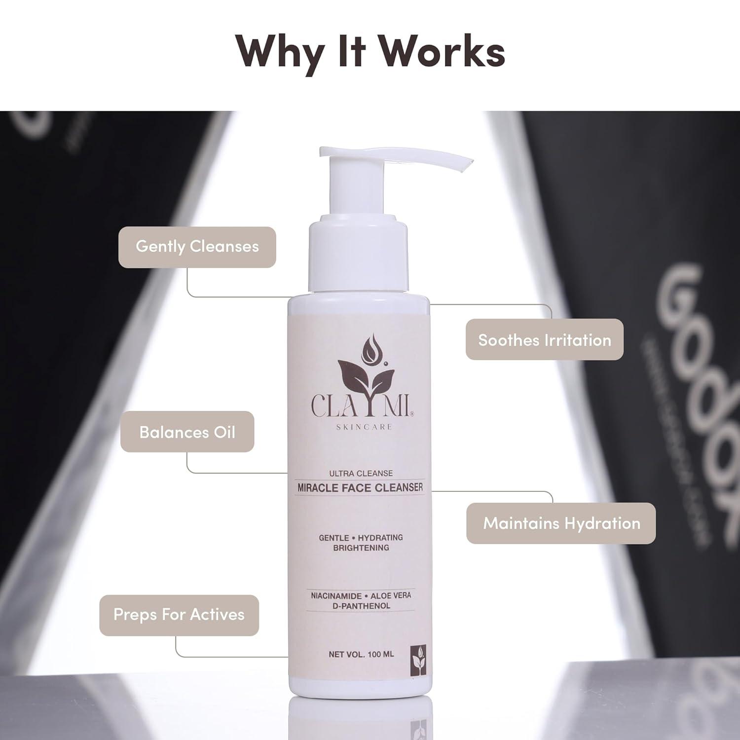 Claymi Miracle Hydrating & Brightening Gentle Face Cleanser is a creamy, low-foam formula designed to deeply cleanse while maintaining the skin’s natural moisture balance. Suitable for normal, dry, combination, and sensitive skin types, it effectively removes dirt, excess oil, and impurities without causing dryness or irritation.