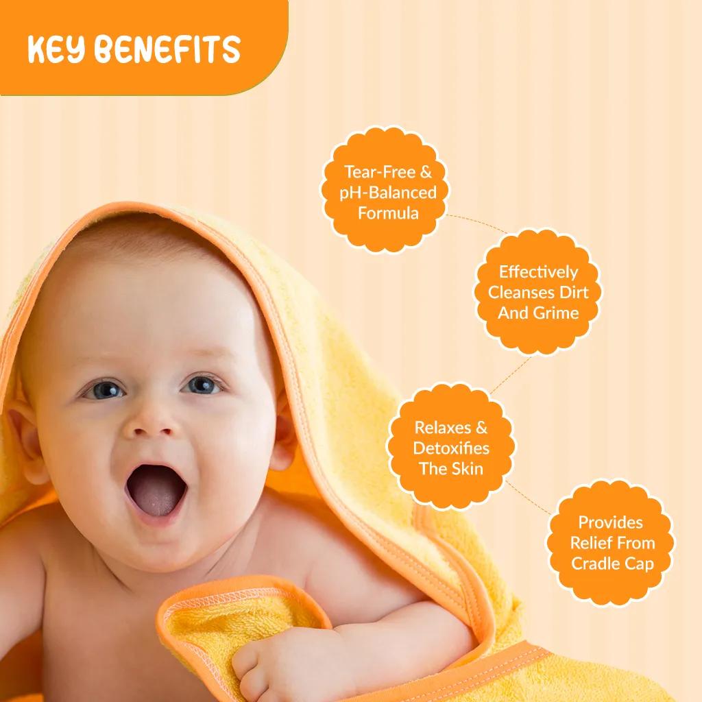 Hoopoe Gentle Hair & Body Wash is a mild, pH-balanced, tear-free formula designed especially for your baby’s delicate skin and hair. Enriched with natural botanical extracts, it gently cleanses without stripping moisture, helping to prevent dryness. This soothing wash keeps your baby’s skin soft, smooth, and hydrated, while leaving the hair clean, fresh, and easy to manage after every bath.