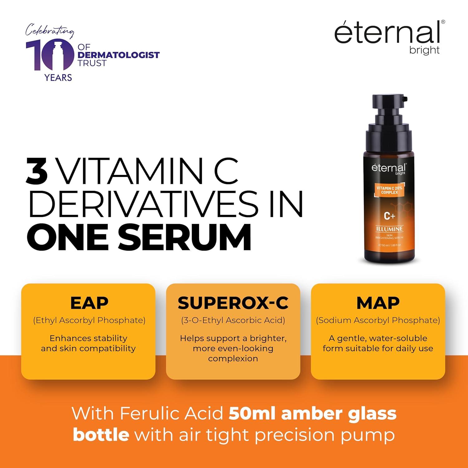 - Vitamin C Blend, Ethyl Ascorbyl Phosphate, Superox C Magnesium Ascorbyl Phosphate, Hyaluronic Acid, Ferulic Acid, Vitamin E, Olive Leaf Extract.