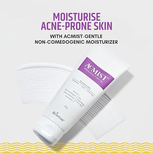 Brinton AcMist Moisturizing Cream Gel is specially formulated for acne-prone and oily skin. Its oil-free, non-comedogenic formula provides lightweight hydration without clogging pores or leaving a greasy residue. Enriched with Vitamin E, Aloe Vera, and Squalane, it balances skin moisture, reduces inflammation, and combats acne-causing bacteria, promoting a clearer, healthier complexion.