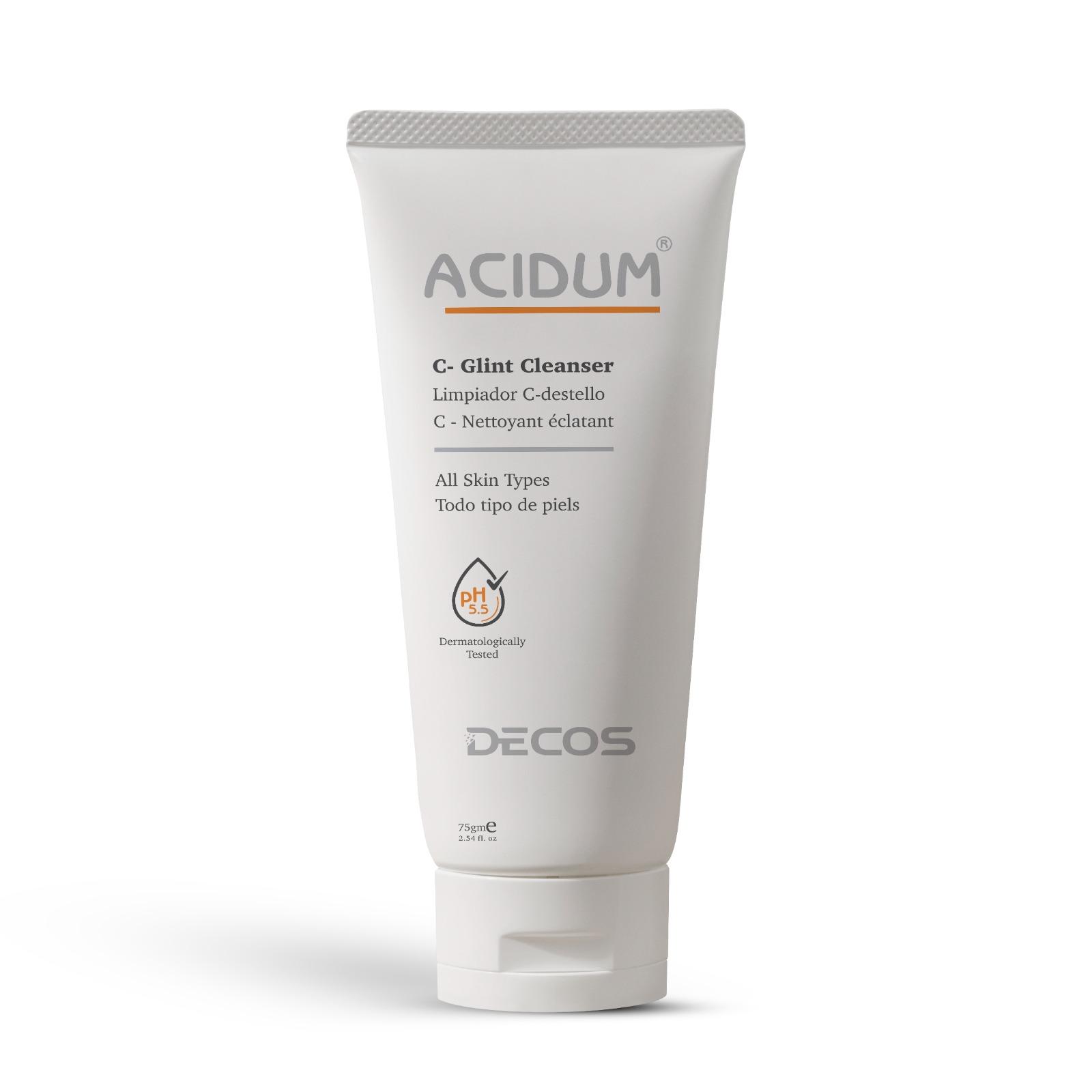 Acidum āCā Glint Cleanser is a gentle yet effective face wash designed to remove makeup and impurities while providing antioxidant protection. Enriched with Ethyl-Ascorbic Acid (Vitamin C), Proteol Oat, Multifruit BSC, Vanilla Extract, and D-Panthenol, it helps even skin tone, unclog pores, and exfoliate dead skin cells. This cleanser not only purifies and refreshes the skin but also soothes and nourishes, leaving your skin soft, smooth, and radiant.