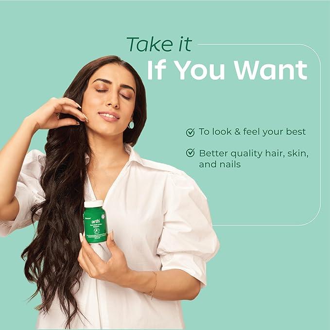 Arth Biotin Capsules for Hair Growth | With Keratin Builder, Hyaluronic Acid & Essential Vitamins | Strengthens Hair, Skin & Nails | Promotes Shine, Volume & Reduced Hair Fall | Daily Hair Care Supplement | 60 Veg Capsules