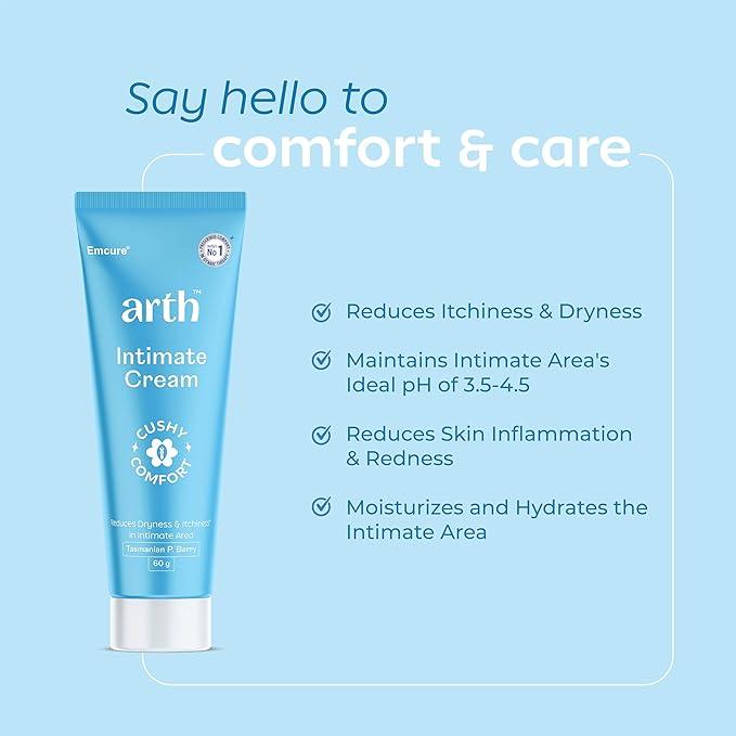 Arth Intimate Cream for Moisturization |Reduces Dryness & Itching| Maintains pH Balance (3.5-4.5) |With Tasmanian Berry & Australian Tea Tree Oil | Daily Feminine Hygiene | Intimate Wash Alternative For Women | 60 gm