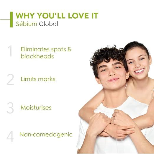 Bioderma Sébium Global Intense Purifying Cream is a dermatologically formulated treatment designed for combination to acne-prone skin. It helps target the root causes of acne while minimizing the appearance of existing blemishes and marks. Powered by Bakuchiol and Bioderma’s exclusive Fluidactiv™ (Seborestore) Technology, it works to rebalance sebum production and improve skin texture. The lightweight, non-comedogenic cream eliminates spots and blackheads, keeps pores clear, and maintains lasting hydration — leaving your skin smooth, matte, and healthy-looking. Suitable for daily use and can be applied under makeup.