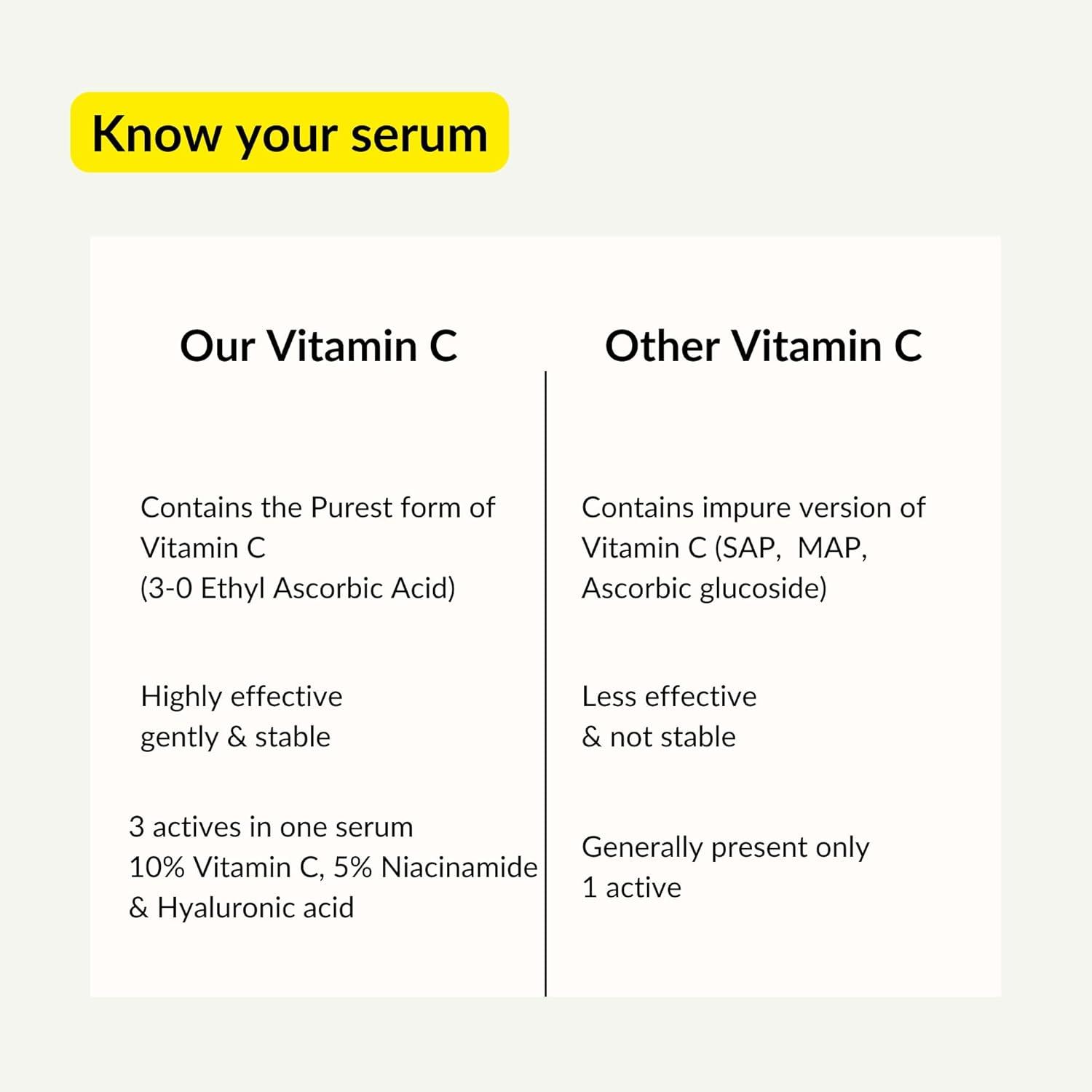 - Vitamin C, Niacinamide, Hyaluronic Acid