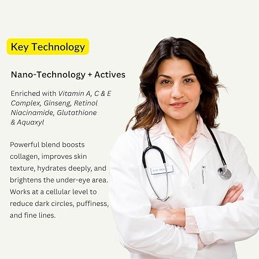 Hydrates & Refreshes: Hyaluronic Acid locks in moisture, keeping the under-eye area soft and plump.