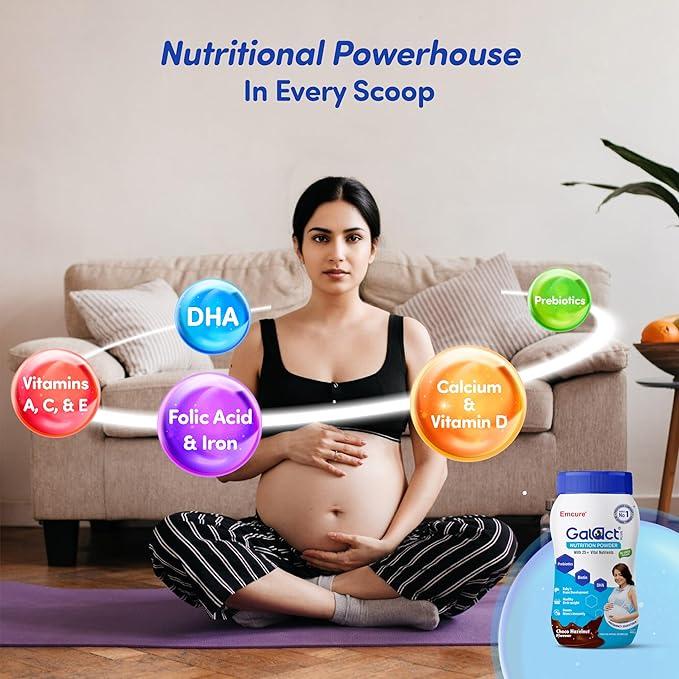 Developed by experts in maternal health, Galact Plus Nutrition Powder offers a comprehensive blend of vitamins, minerals, and prebiotics to ensure complete nourishment for expecting mothers. It helps maintain energy, immunity, and bone strength while supporting your baby’s healthy brain and body development.