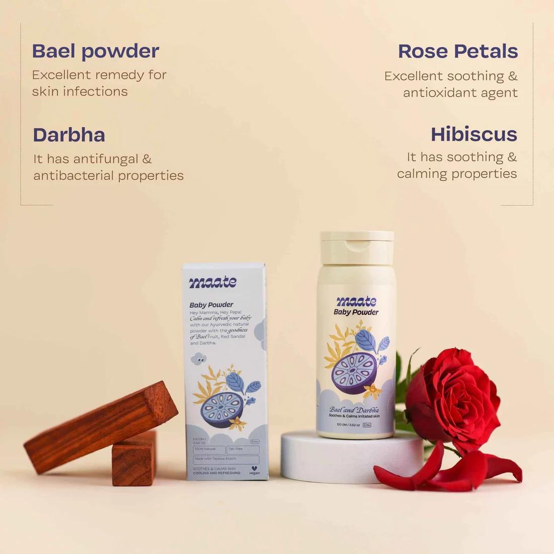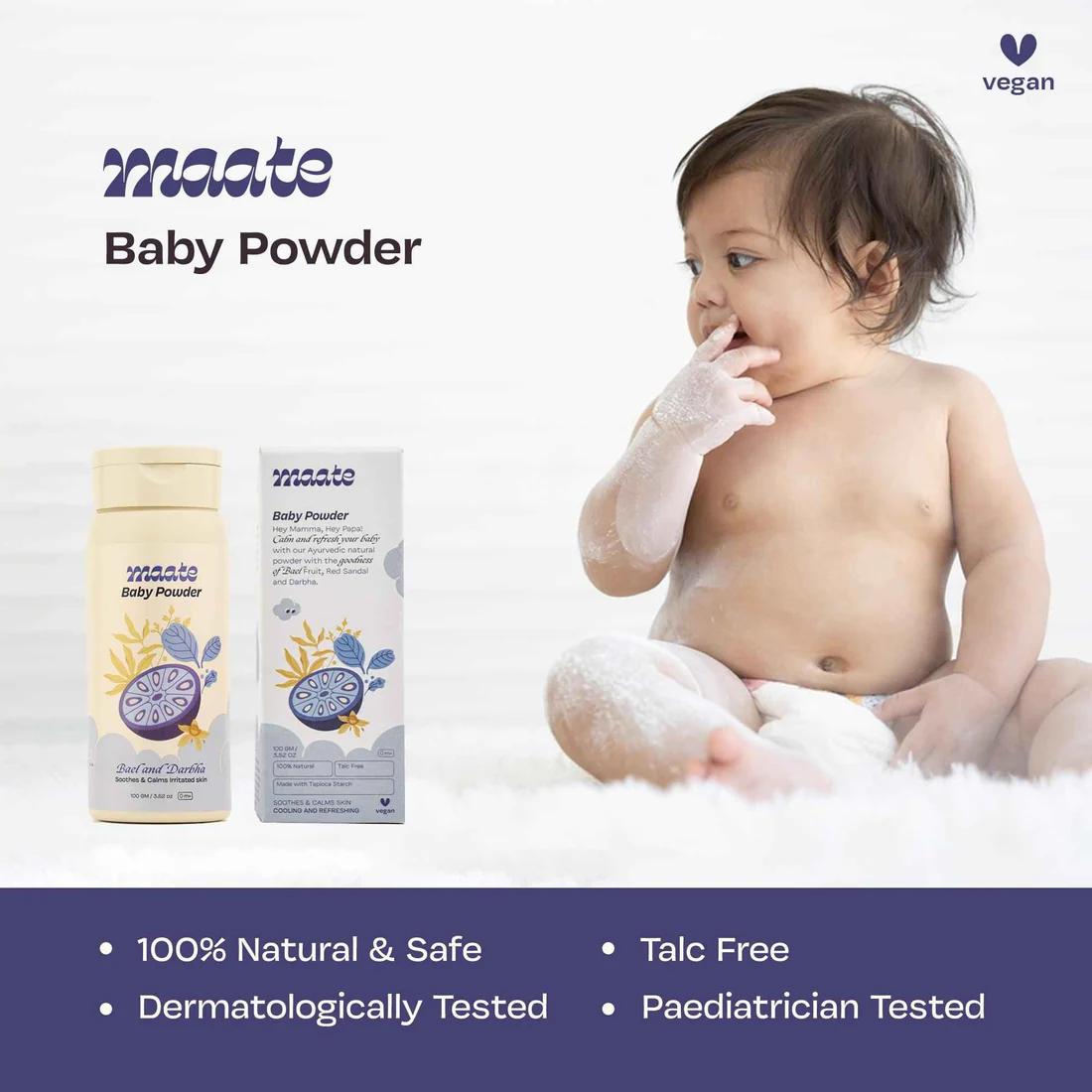 Maate Ayurvedic Baby Powder – 100 gm | 100% Natural & Talc-Free