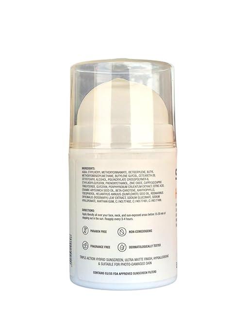 Hybrid Formulation: Combines mineral and chemical UV filters for fast absorption and smooth finish.