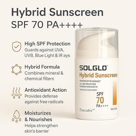 SOLGLO Hybrid Sunscreen SPF 70 PA++++ – 50 ml
