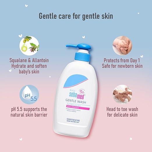 Sebamed Baby Gentle Wash provides mild, nourishing cleansing for baby’s sensitive skin. Its soap-free, pH 5.5 formula helps preserve the skin’s natural barrier, while Squalane and Allantoin protect against dryness and irritation. The tear-free formula ensures gentle care even around delicate eyes. Free from harmful chemicals, it is safe for everyday use and offers excellent value for growing babies.