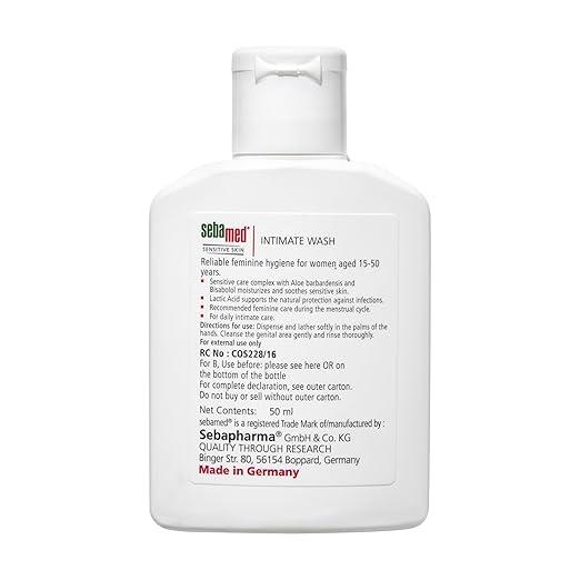 Sebamed Intimate Wash is a gentle, pH 5.5 cleanser designed for women aged 15–50 years to maintain daily feminine hygiene. Its sensitive care complex with Aloe Vera and Bisabolol soothes and moisturizes delicate skin, while lactic acid helps support the vulva’s natural protective barrier against infections. Clinically tested and recommended for daily use, this intimate wash provides comfort and protection, including during the menstrual cycle.