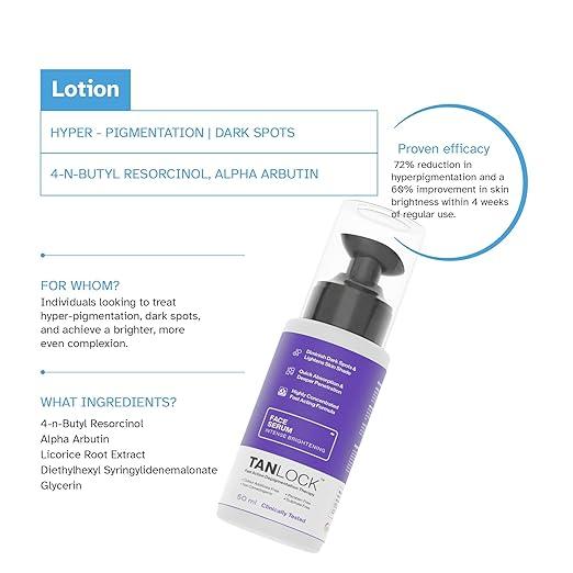 Tanlock Intense Face Brightening Serum is a dermatologist-formulated, non-comedogenic serum designed to fade dark spots, reduce hyperpigmentation, and restore an even skin tone. Enriched with Butyl Resorcinol, a powerful tyrosinase inhibitor, and Alpha Arbutin, a gentle yet effective brightening agent, this serum works to control melanin production and deliver a radiant, glowing complexion. Its lightweight, fast-absorbing formula penetrates deeply without clogging pores, making it ideal for daily use on all skin types, including oily and acne-prone skin. Free from mineral oil, parabens, and sulfates, Tanlock ensures safe and effective brightening with consistent use.