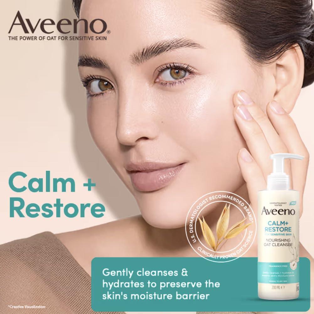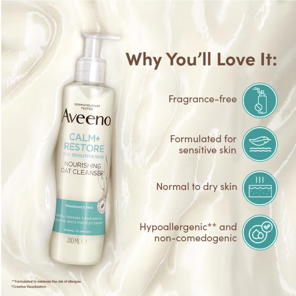Aveeno Calm + Restore Nourishing Oat Cleanser for Sensitive Skin | Fragrance-Free | 200 ml