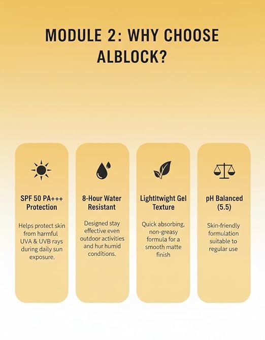 Alblock Sunscreen Emulsion Gel SPF 50+ PA+++ delivers advanced, broad-spectrum sun protection in a lightweight, non-greasy gel formula. Powered by modern UV filters such as Ethylhexyl Methoxycinnamate and Methylenebis-Benzotriazolyl Tetramethylbutylphenol, it helps protect the skin from harmful UVA and UVB rays. Enriched with skin-nourishing ingredients including Sodium Hyaluronate, Tocopheryl Acetate, and Glutathione, it provides hydration and supports a brighter, healthier-looking complexion. Botanical extracts like Scutellaria Baicalensis and Salicornia Herbacea help soothe the skin and defend against environmental stressors, making it an ideal choice for daily sun protection.