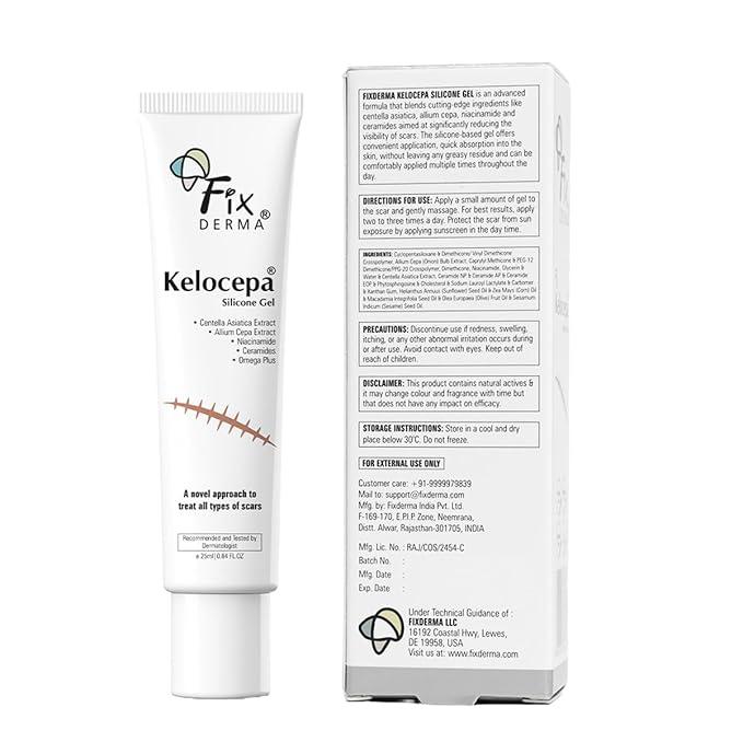 Fixderma Kelocepa Silicone Gel for Scars with Allium Cepa, Niacinamide & Omega Plus | Fades Surgical, Injuries, Burns & Acne Scars with Advanced Healing Formula | Suitable for All Skin Types - 25 ml