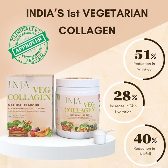 Boost your collagen levels naturally with INJA Veg Collagen, India’s pioneering plant-based collagen supplement. Crafted from high-quality vegetable peptides, this advanced formula goes beyond a typical collagen booster—supporting your body’s natural collagen production from within.