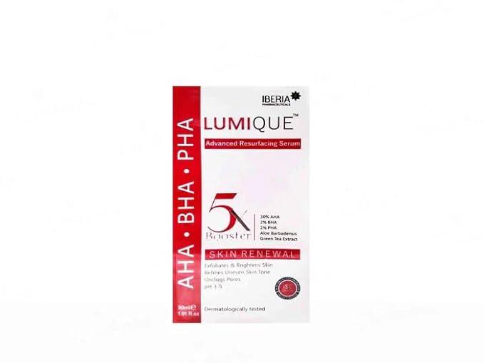 Lumique Advanced Resurfacing Serum is a high-performance skin renewal solution designed to refine texture, brighten complexion, and promote smoother-looking skin. Powered by a potent 30% AHA + 2% BHA + 2% PHA triple-action exfoliating complex, this advanced formula works to gently remove dead skin cells, unclog pores, and improve uneven skin tone.