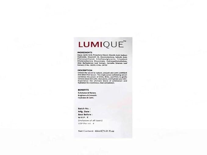 Lightweight and concentrated, this dermatologically tested serum comes in a convenient 30 ml dropper bottle for precise application. With regular use, Lumique Advanced Resurfacing Serum helps reveal brighter, refined, and more radiant skin, making it ideal for anyone seeking professional-grade skin renewal at home.