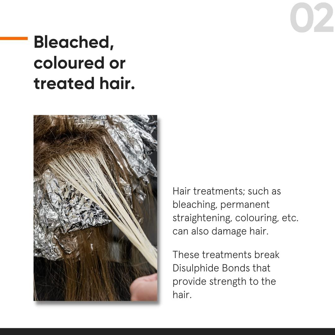 Repairs hair bonds weakened by styling, UV, or chemical damage