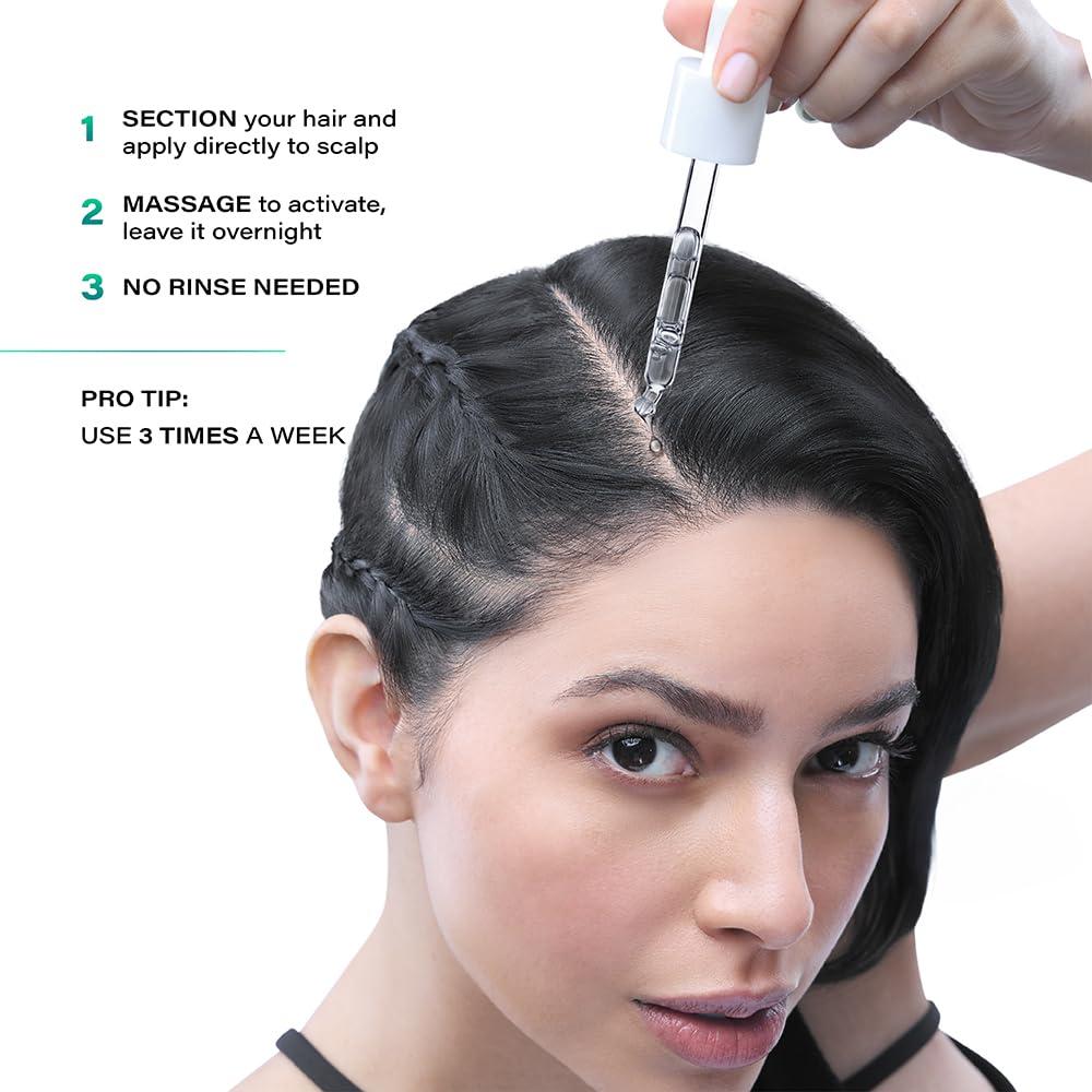 Section the hair and apply 2 dropperfuls evenly to cover the entire scalp.