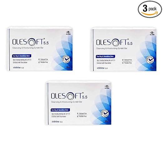Olesoft 5.5 Cleansing & Moisturizing Syndet Bar is a dermatologist-tested bar specially formulated for dry and sensitive skin. Its gentle pH 5.5 formula helps maintain the skin’s natural balance while preventing dryness. Enriched with Shea Butter and Olive Oil, it nourishes deeply, leaving skin soft, smooth, and hydrated. The non-irritating, paraben-free, and colorant-free syndet base cleanses effectively without stripping natural oils. Suitable for daily use and all age groups, Olesoft 5.5 promotes healthy, radiant skin with every wash.