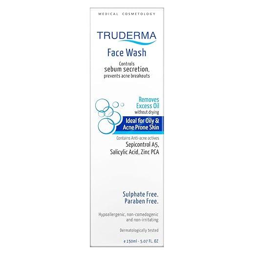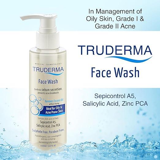 Truderma Face Wash is a dermatologist-approved cleansing formula designed to regulate excess oil production and help prevent acne breakouts. Powered by effective anti-acne ingredients such as Sepicontrol A5, Salicylic Acid, and Zinc PCA, it deeply cleanses the skin by removing excess sebum, dirt, and impurities without causing dryness.