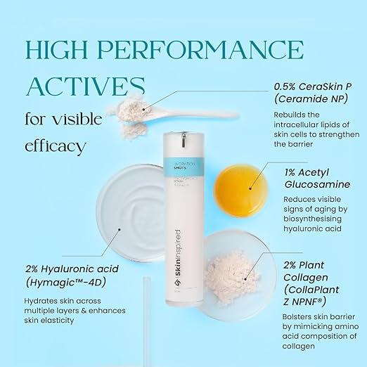 Quench your skin’s thirst with the SkinInspired Hydration Shots Serum. A daily hydrating face serum designed to restore moisture, smooth fine lines, and improve skin elasticity. Powered by 2% Hymagic-4D Hyaluronic Acid, plant-based collagen, and ceramides, this lightweight, non-comedogenic serum targets multiple layers of the skin for long-lasting hydration and a youthful glow.