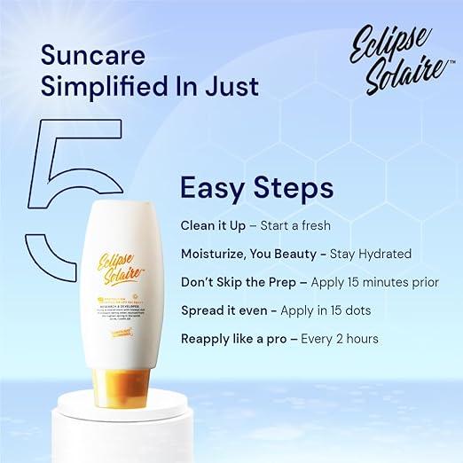 YUDERMA Eclipse Solaire Aqua Fusion Sunscreen SPF 50 PA+++ 60ml | 5X Protection | With Himalayan Spring Water | Non-Greasy Formula | All Skin Types
